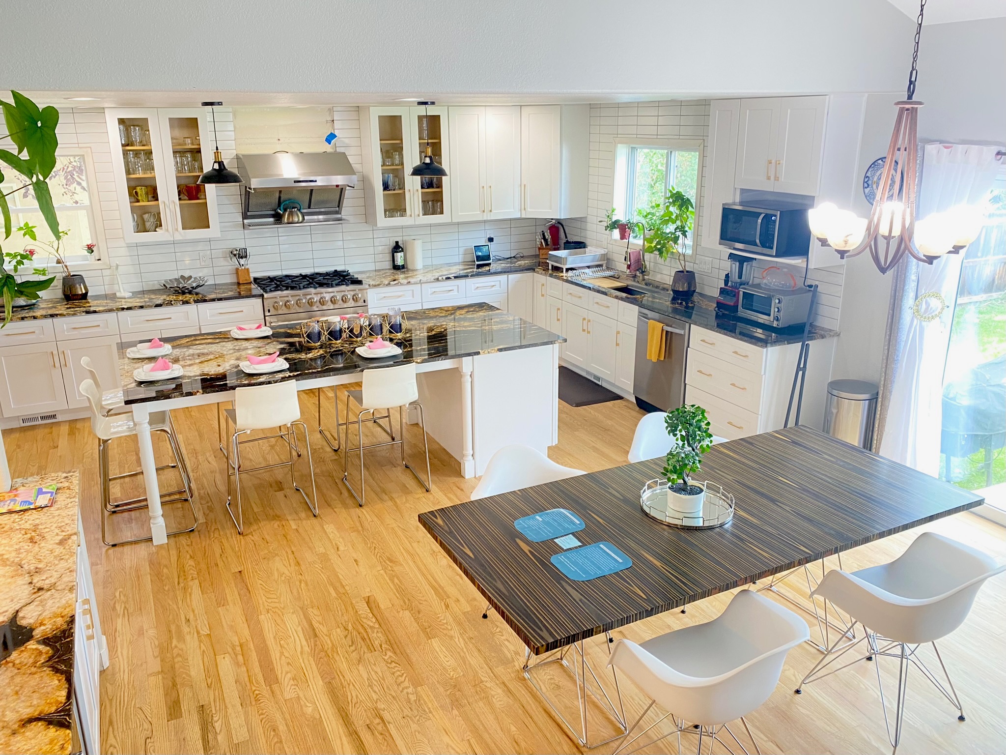 Unlimited comfort, personally and uniquely designed with modern sensibilities. Inside, there’s lots to enjoy, whether it be the coffee bar, kitchen island, living room, dining room- all of which is in an open space w/ a tall ceiling and bright windows, perfect for big groups.